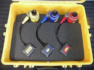 The M2400-3-50CSLC is a complete wireless aircraft weighing kit. It features three 50,000 lb load cells, wireless connection, and laptop computer running Windows and Jackson Weighing Service software.